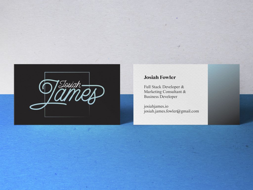 A logo and business card designed for Josiah Fowler, Full Stack Developer, Marketing Consultant & Business Developer.